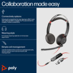 HP Poly Blackwire 5220 Stereo USB-C Headset +3.5mm Plug +USB-C/A Adapter, Wired, Business/Everyday, 165.2 g, Headset, Black