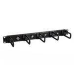 • TECH SPECS: 1U 19″ Rack cable organizer / 4 x cable pass-through / 5x routing loops / Steel construction / Mounting hardware included / 4″ depth with hooks installed / EIA/ECA-310-E compliant
